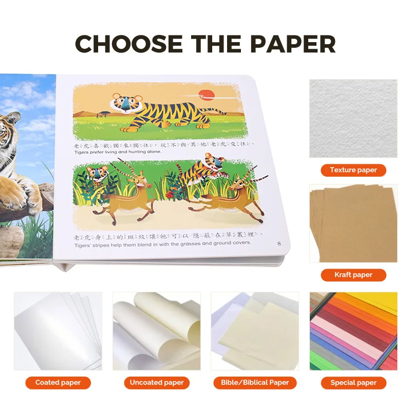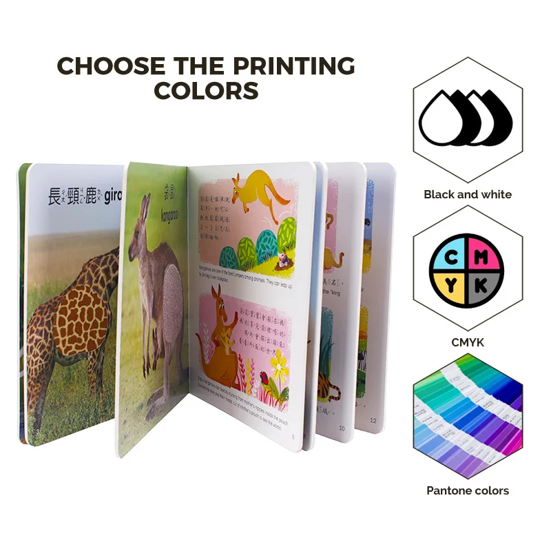Zosilnená tvrdá obálka a hrubé doskové stránky: Vonkajšia obálka je vyrobená z 3 mm hrubej vysokohustotnej papierovej dosky s laminátovou ochranou, odolnej proti poškrabaniu a nárazom; vnútorné stránky sú z potravinársky nezávadných dosiek hrúbky 2,2 – 2,5 mm, netoxických, bez BPA a odolných voči hryznutiu. Okraje stránok sú upravené na zaoblené rohy (polomer ≥3 mm), čím sa úplne eliminuje riziko poranenia drobných detí, čo plne zohľadňuje návyky používania predškolských detí.